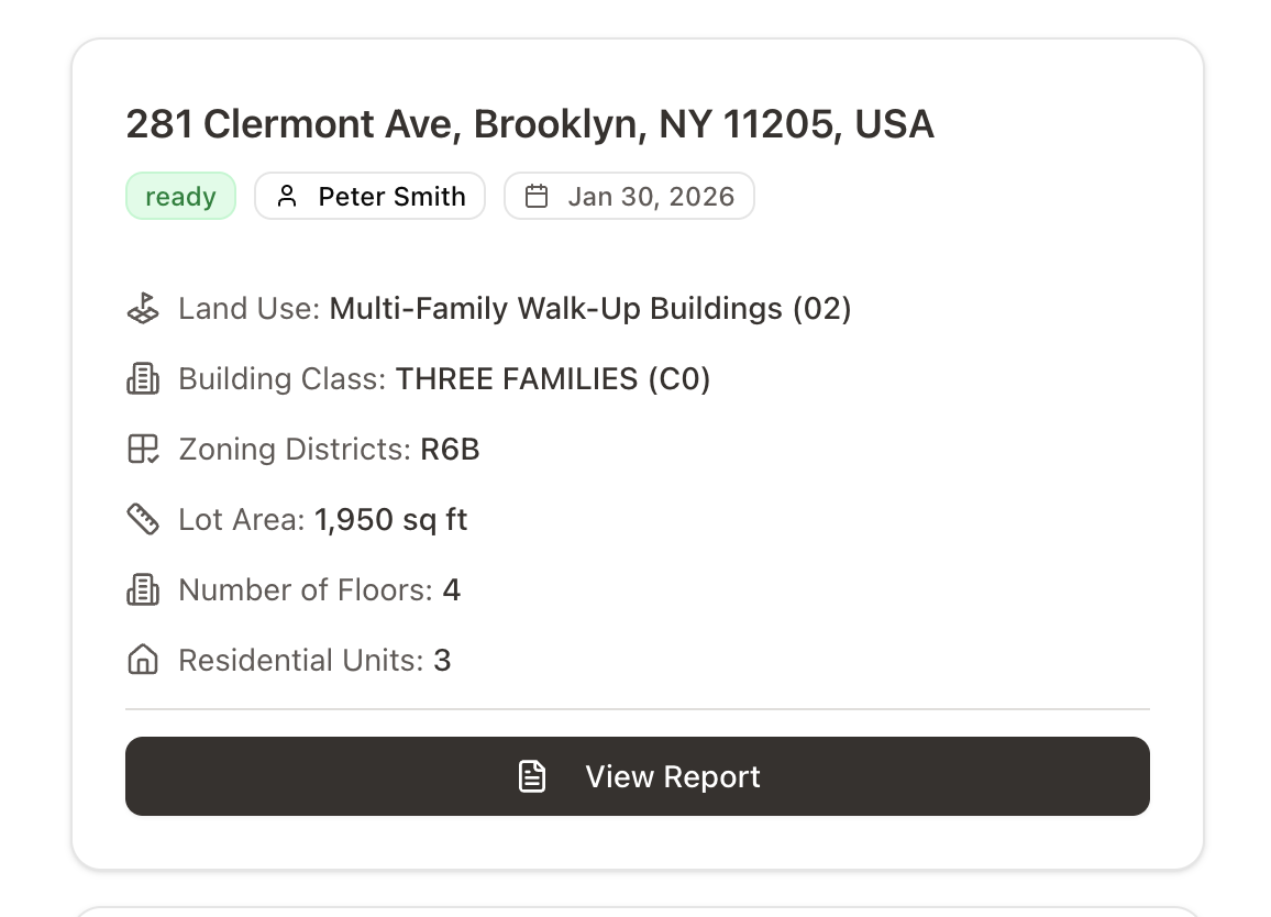 Clermont is a zoning pre-check and feasibility tool built for developers and architects. It helps teams quickly understand what may be possible on a property by generating a clear zoning and land-use summary from an address. Clermont is designed for early-stage evaluation by providing clarity on key constraints like FAR, base height, max building height, lot coverage, and setbacks before design work begins. It gives architects and developers a fast, structured read so they can make informed decisions earlier in the process.